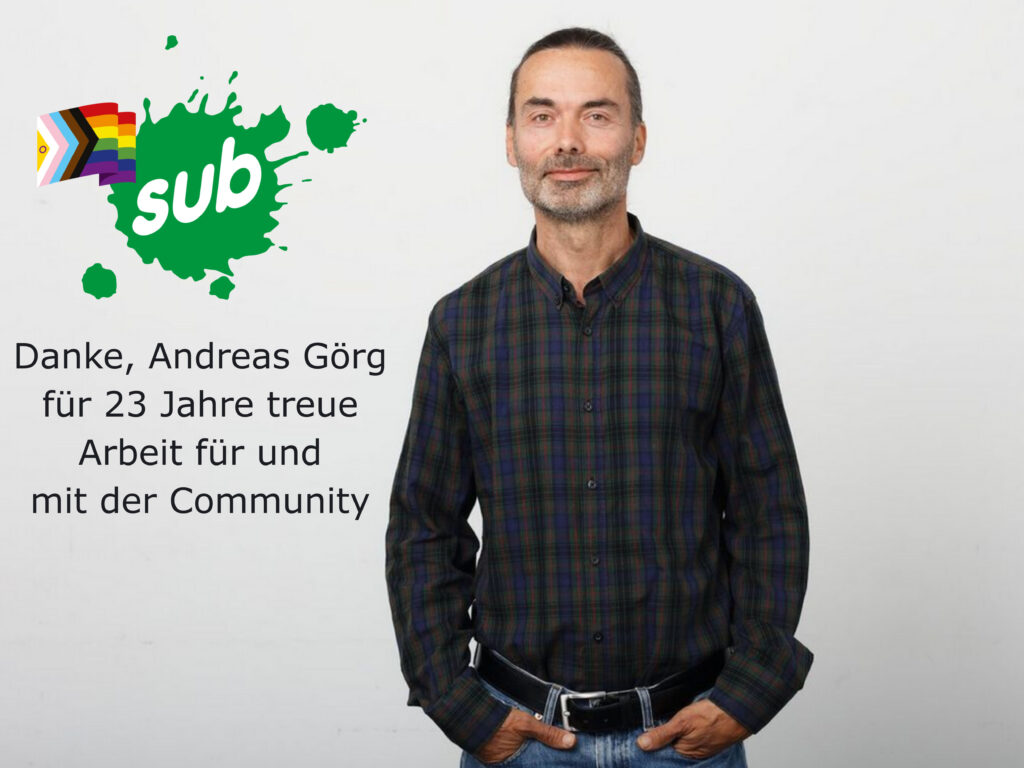 Andreas Görg verlässt das Sub in den wohlverdienten Ruhestand. Rund 23 Jahre hat er in der psychosozialen Beratung gearbeitet, eine beeindruckende Zeit, wenn man sich die ansonsten so schnelllebige Gesellschaft vor Augen führt.
