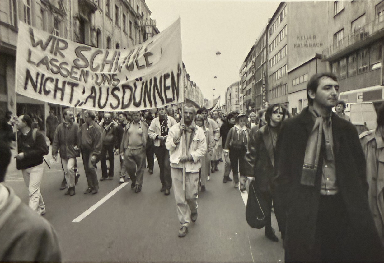 Fotos Ludwig Frank (1987, 2025), Kai Kundrath, Jörn Vogt, Leonie L., Demo gegen Gauweilers Maßnahmenkatalog 1987, Sub 2004 in der Müllerstraße 43,Sub 2012 in der Müllerstraße 14