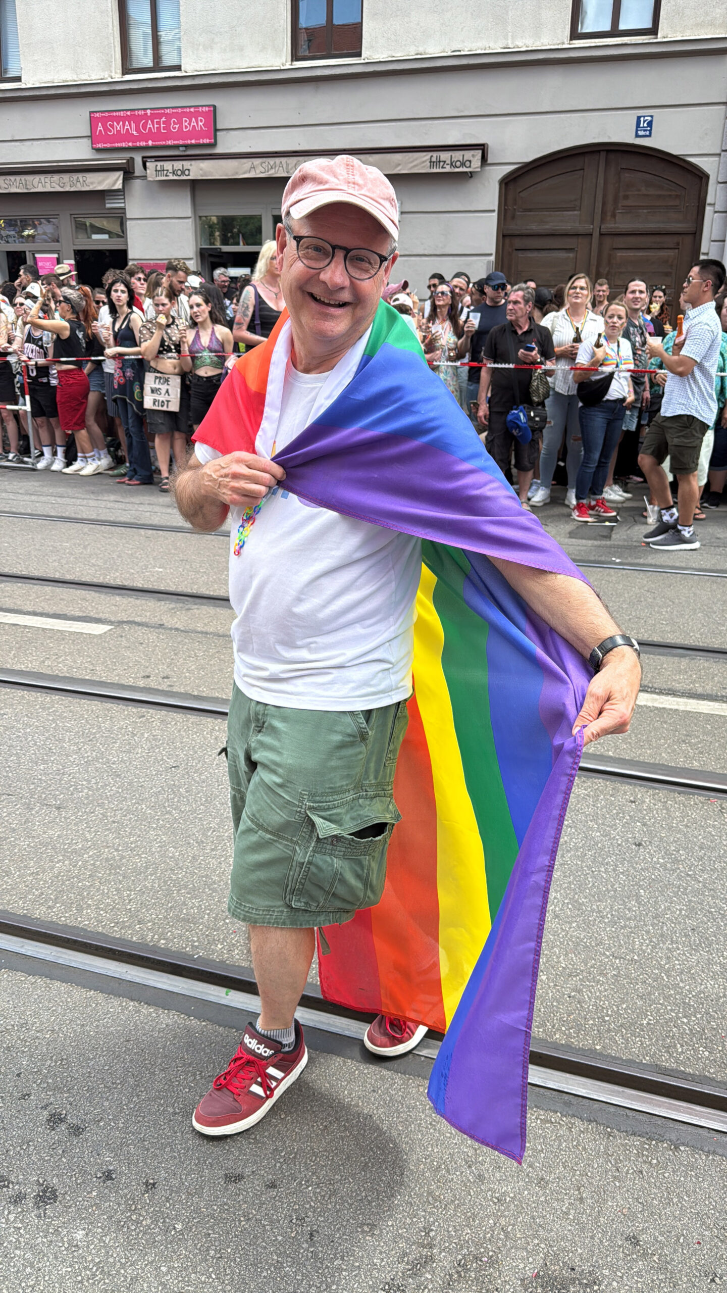 Foto Adiri Lubega mit Partner beim CSD 2025 vor dem Sub (privat)